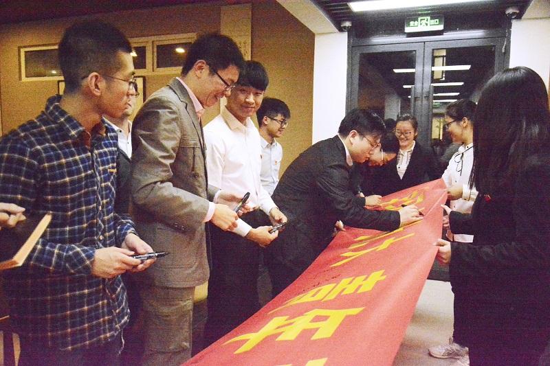 与会同学们纷纷交流发表自己的心得体会并提议郑重地签下自己的承诺,共同将“学习十九大,青年勇担当”这一主题深入贯彻,体现到平时的行动中。