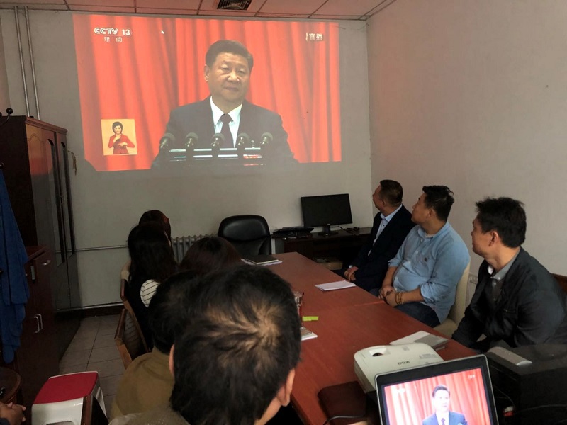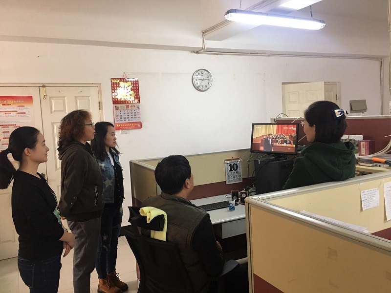 在三个半小时的时间里,大家跟随习近平主席一起回顾了十八大以来的五年。报告指出,五年来,我国的经济建设取得重大成就,全面深化改革取得重大突破,民主法治建设迈出重大步伐,思想文化建设取得重大进展,人民生活不断改善,生态文明建设成效显著,强军兴军开创新局面,港澳台工作取得新进展,全方位外交布局深入展开,全面从严治党成效卓著。党的创造力、凝聚力、战斗力显著增强,焕发出新的强大生机活力,为党和国家事业发展提供了坚强政治保证,也进一步坚定了基层干部职工拥护党、支持党、永远跟党走的热情和信念。