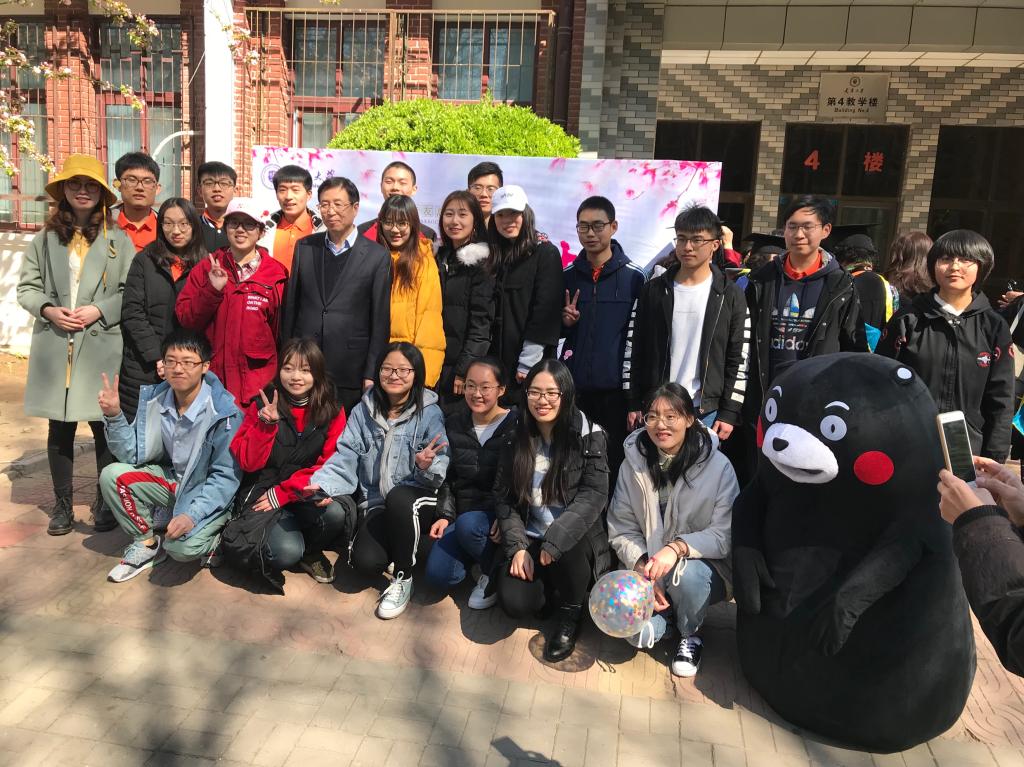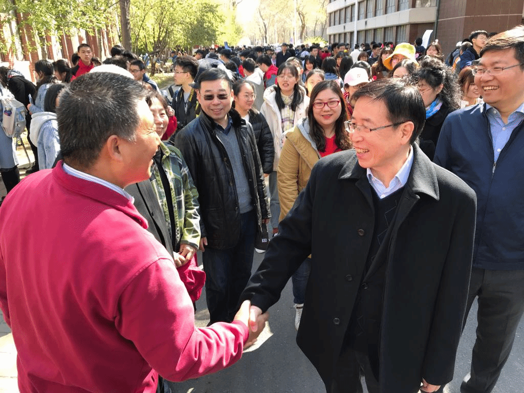今年海棠季的主题是“我和我的祖国”与“智创新时代”,校友总会紧贴主题,举办了丰富多彩的活动,使校友们在赏花之余增添了不少的乐趣。天津大学党委书记李家俊亲自来到活动的现场,与校友共话母校之情,并和现场的志愿者合影留念。