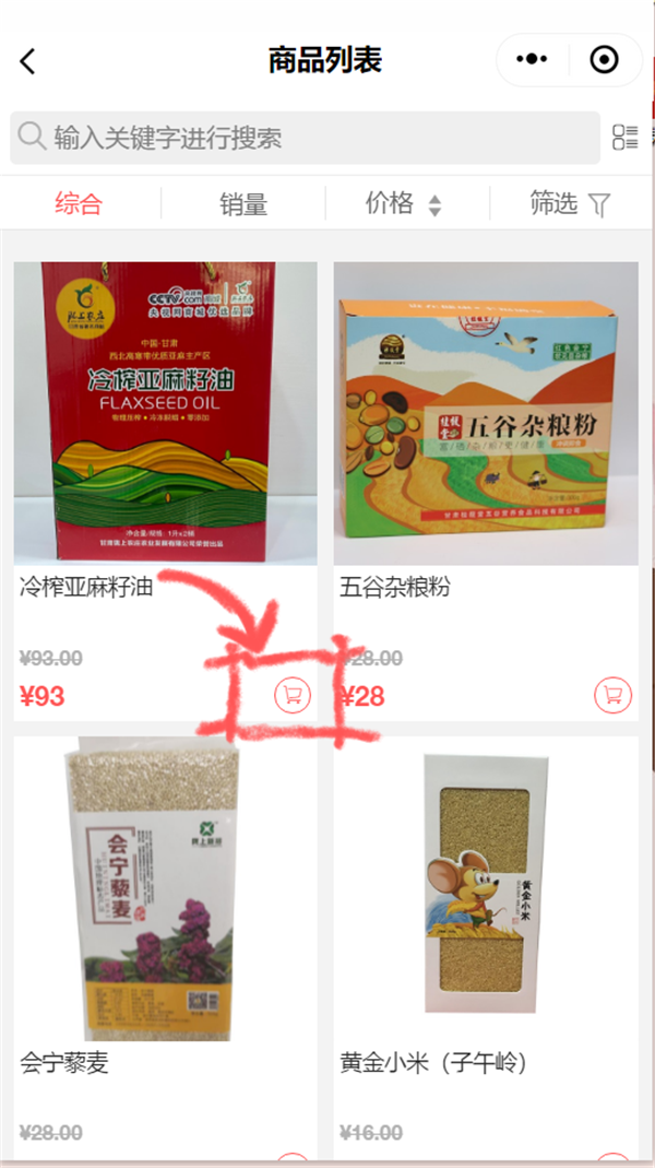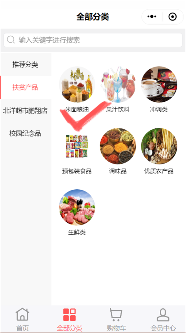 4.根据实际需求选择产品分类,如“米面粮油”。
