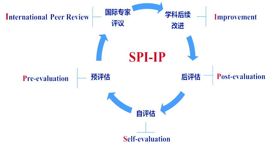基于此,我校自2016年启动了学科国际同行评议工作,始终坚持“以评促建、以评促宣,推动学科内涵建设和一流水准”的方针和“高标准、科学性、高质量”的原则。在国际评议工作中,研究生院学科办在广泛调研的基础上,科学设计了包括前期筹备、材料准备、专家遴选、现场评议和意见反馈在内的工作流程和注意环节,形成了具有“天大特色”的学科国际同行评议模式——“SPI-IP”,即包括自评估(Self-evaluation)、预评估(Pre-evaluation)、国际专家评议(International Peer Review)、学科后续改进(Improvement)和学科建设“后评估”(Post-evaluation)环节,为学科国际同行评议工作的高质量开展提供了制度保障。我校“SPI-IP”模式主要包含以下环节: