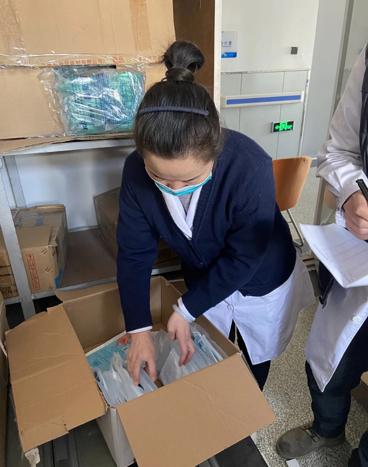如果口罩断供,无疑将大大增加校医院医护人员暴露的风险。怎么办?校医院迅速采取紧急管控措施,一方面节约使用,领用物资签字落实到人;另一方面发动全部力量四处追寻优质口罩供应源头。从初七到初十七,时间一天天过去……直到二月初二,功夫不负有心人,口罩终于找到了!一批口罩从河北省运到了天津,足够校医院医护人员2个月的防护储备。此时,负责物资采购的校医院行政副院长胡佳玲才长长舒了口气.....
