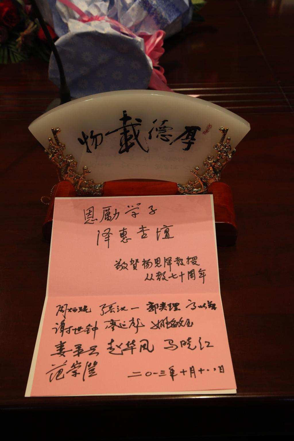杨恩泽教授从新中国成立前夕就从事教育工作,直到20多年前退休,培养出数不清的本科生、硕士生,很多人已是国家栋梁之才,或是某个领域的知名学者,甚至还有举足轻重的院士。学生们把杨恩泽当做事业的导师、人生的楷模,而他则把培养学生看作与完成科研课题一样,“是自己对党和人民回报的成果”。