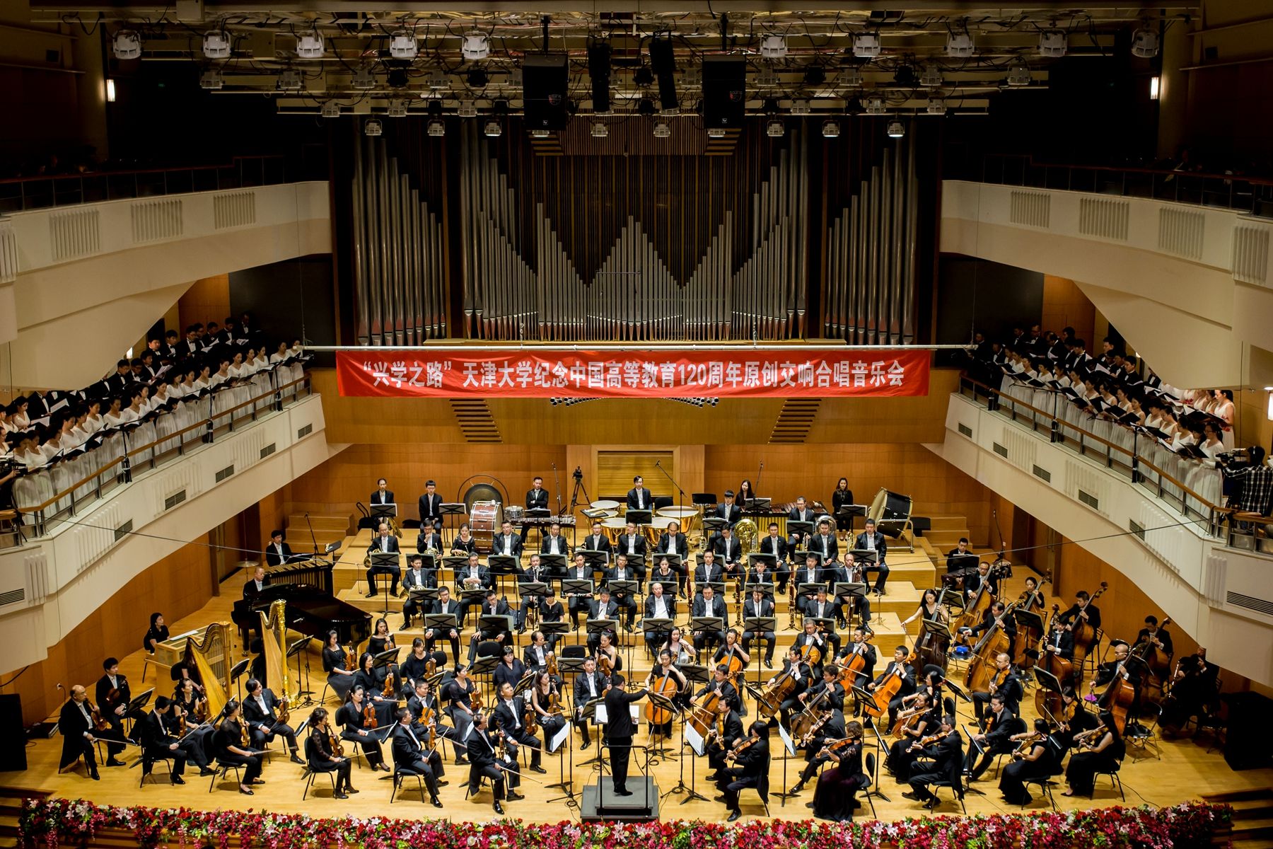 推进艺术展演 学校持续27年每周在固定时间、固定地点举办的“周末音乐会”,演出已开办超过千期,吸引了50余万人次参与,是天津大学开展艺术教育的鲜明特色。学生既是“周末音乐会”的欣赏者,又是演出者,学校打造出校内欣赏和交流音乐的有效平台,让广大学生每周末“足不出校”就能欣赏高雅的艺术演出,陶冶情操。“共和国的脊梁”献礼大戏《侯德榜》再现了天津大学(北洋大学)教授侯德榜的救亡图存制碱之路,以“学弟演学长”的形式润物无声地引领青年。2024年3月,话剧《侯德榜》在中国人民公安大学成功上演,拉开“科学大师宣传工程”2024年全国首演的序幕,侯德榜先生之孙侯盛锽、侯盛铮,以及孙女侯盛欣对演出给予了高度评价。该次演出中,学校和天津渤化永利化工股份有限公司共同策划侯德榜先生主题展览,“展”“演”结合弘扬科学家精神。该剧自2014年立项以来,已先后在天津、北京、内蒙古、广东、河南、福建上演26场。今年4月,学校组织学生参加世界内燃机大会专场演出,向世界各国专家展示了天大学子的青春风采。