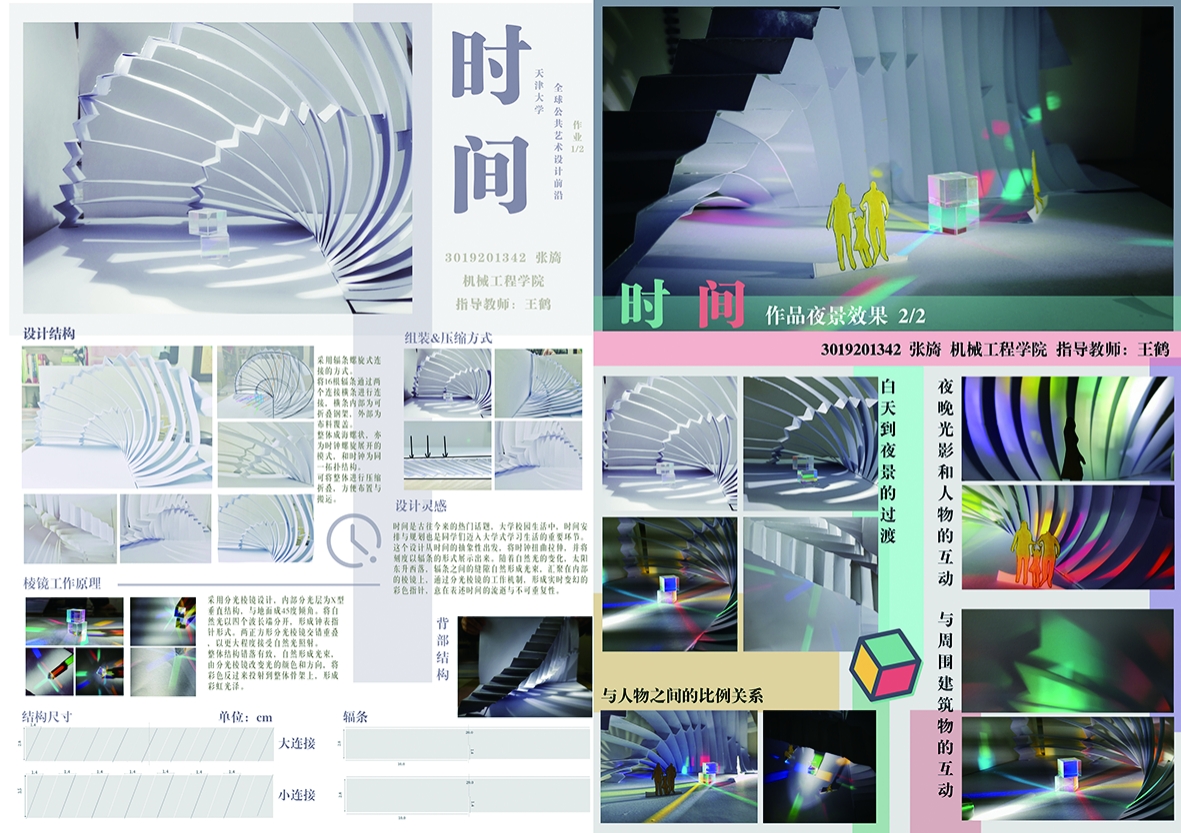 其次,学习者个人感悟与反馈良好。通过查看数百位不同工程专业同学热情反馈后,绝大多数同学都表示通过课程学习,从对艺术毫无了解、到审美素养逐步提升,并且还在利用自己专长进行公共艺术设计创作的过程中体会到了欢乐。这反映出该课程的教学实验取得了成功。