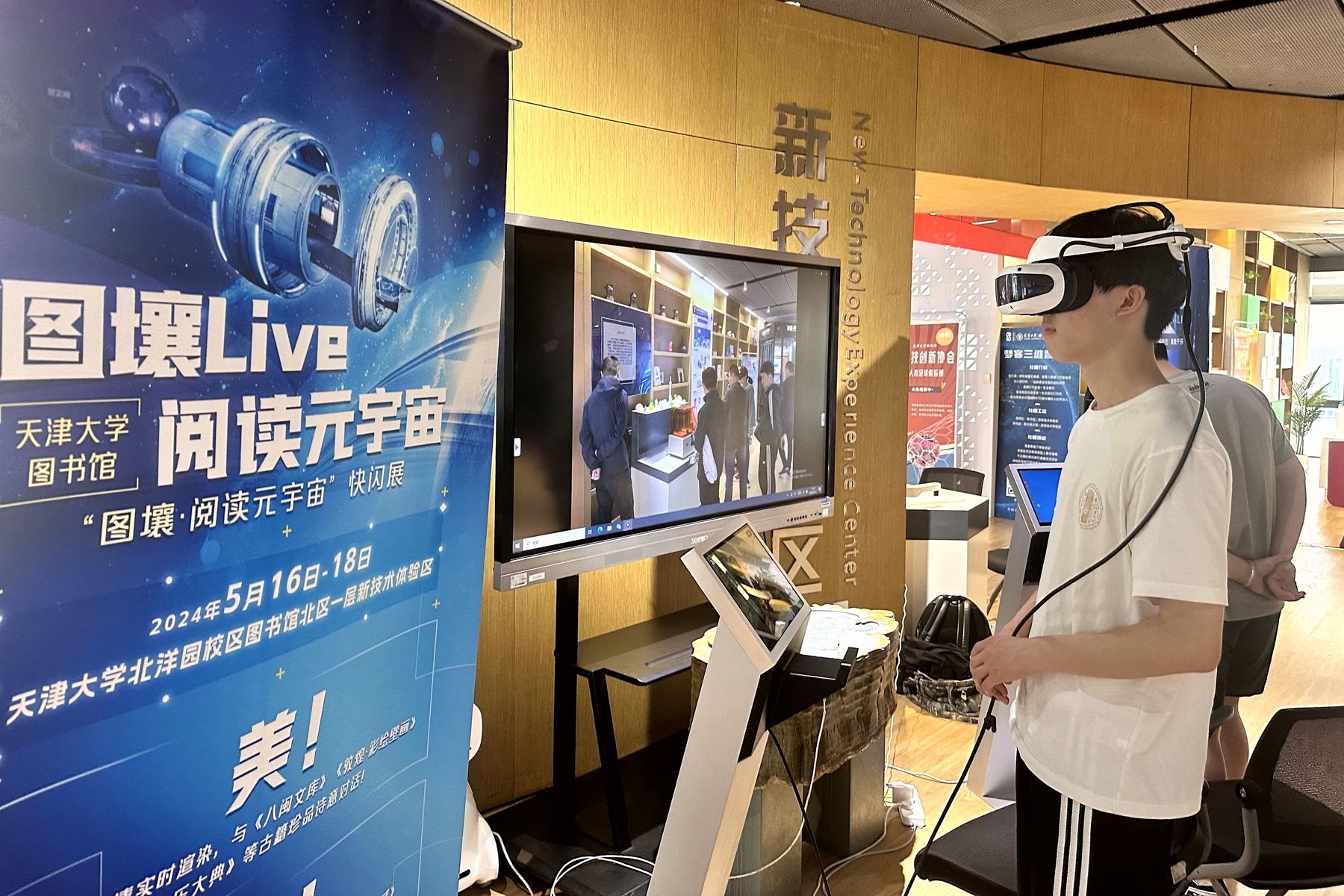 三是与培育科技自立自强精神相融合,凝聚奋进力量。学校以培养思辨能力和创新精神为重点,组织开展天大新技术体验周、胡小唐度量衡藏品展、中国古代科技名著选读、“海洋强国”系列荐读等形式的阅读活动;加强图书馆新技术体验区建设,提供场地和数字资源服务,深化“科技前沿”系列阅读推广,举办“把握数字科技,赋能未来学习”等科技体验活动,涵盖红色党建、美育空间、数字阅读、人工智能、VR体验、智慧设施等;院级单位组织学生骨干讲授《“两弹一星”科学家精神学习交流》主题党课、“抢抓发展新质生产力 担起时代新青年使命”读书会等。