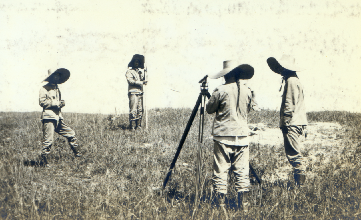 《毛理尔和他热爱的中国》书中北洋大学早期学生在野外测量的场景
