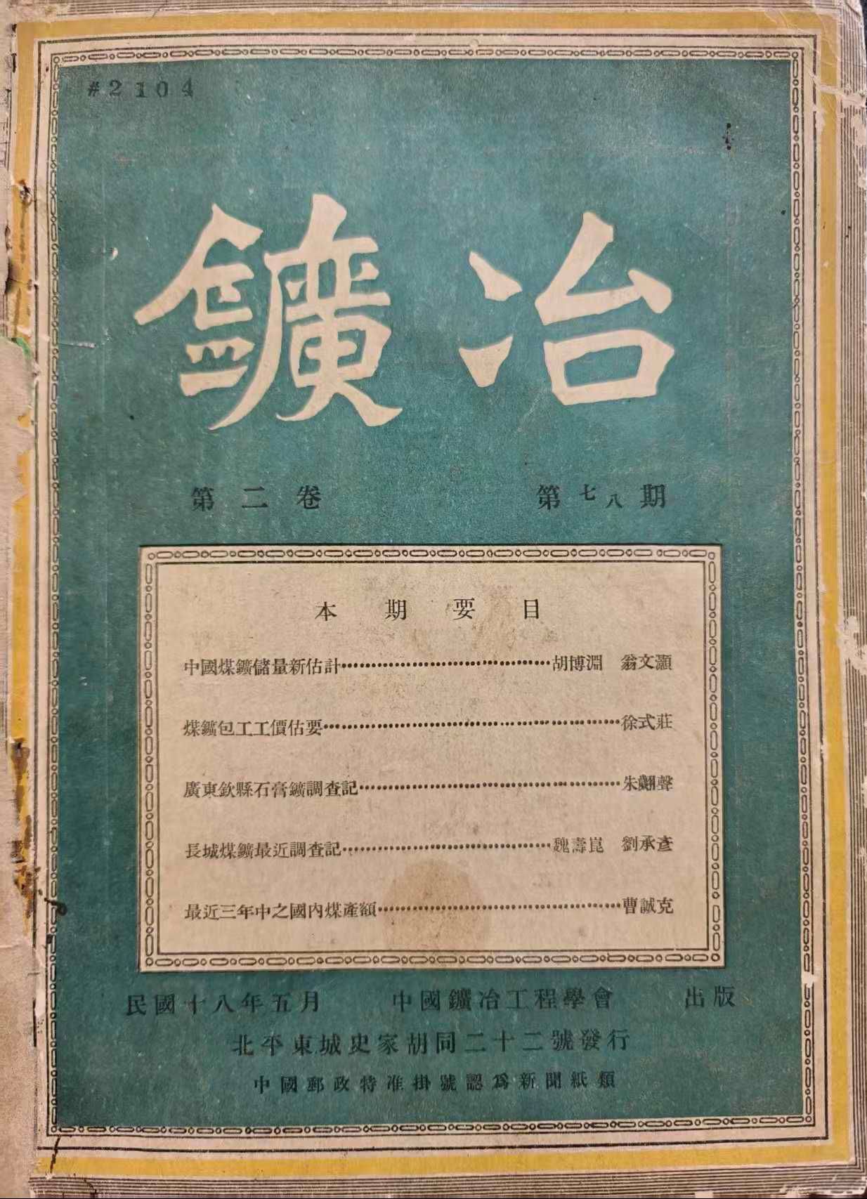 1929年出版的《矿冶》第二卷