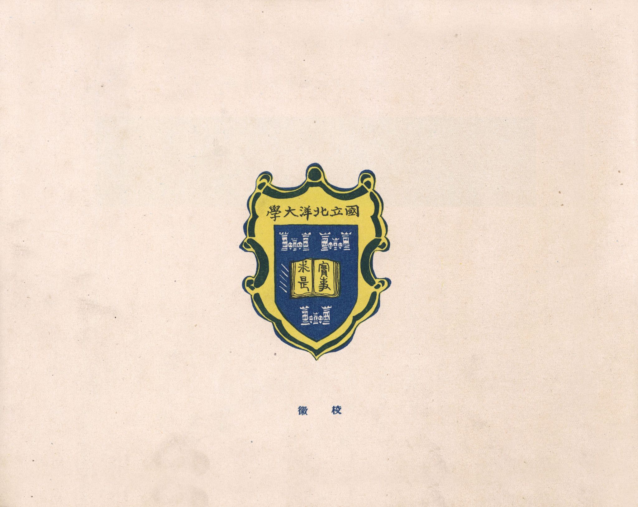 北洋大学初创时期的校徽,整体红铜质,鎏金、蓝珐琅为辅料,既吸收了西方大学的文化因素,又赋予了新的含义。校徽通体为盾形,体现了学校“兴学强国”做民族之盾、国家之盾的办学理念。其底色为金色和蓝色相间。北洋大学为皇帝御批国立官办的大学,金色凸现了中国传统文化中金黄色为皇权象征的特点,学校地处渤海之滨,面向大海,因此蓝色成为北洋校色,体现着先进性。盾牌中心是一本打开的书,正中撰写“实事求是”校训,它是北洋大学的精神核心。环绕四周的是三个堡垒和五支箭头,代表着三个学科和五个班级。在这些图案的上方书写着六个字“国立北洋大学”。它表明了这所大学的性质和办学层次,表明这所大学包容了校徽中的全部内涵——走进“国立北洋大学”,面前是一本永远读不完的书。据老校友回忆,当时的校徽是在美国制造,每个一美元。后因专办工科、抗战西迁、学分理工,校徽的形式有所变化,但被北洋校友一致认可的还是盾牌校徽。