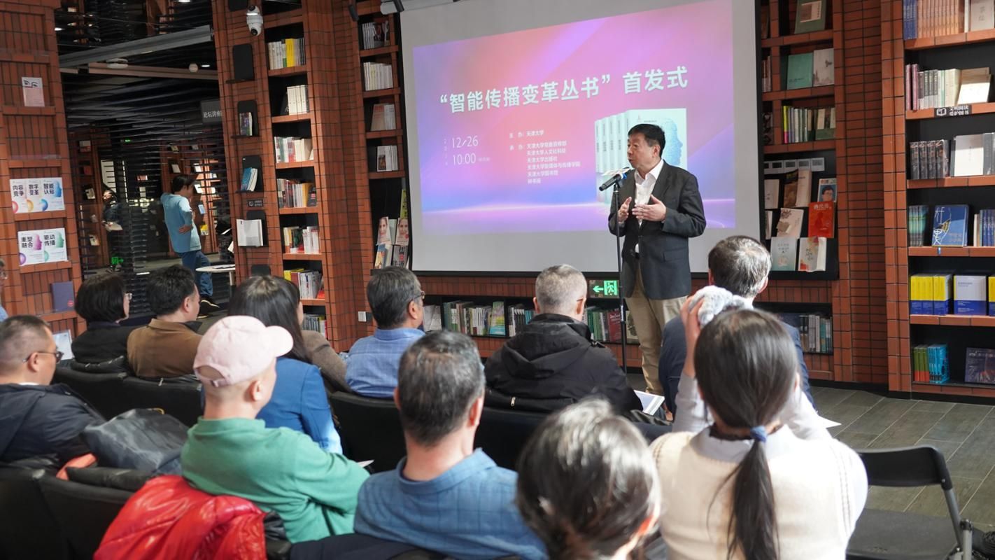 2024年12月26日,由陆小华编著的“智能传播变革丛书”正式发布。这套丛书包括《智能认知》《数字变革》《内容竞争》《驱动传播》《重塑融合》,共约127万字。这套丛书从五方面论述了如何趋势把握、战略设计、对策选择、案例解剖,又构成一个整体,体现以推动多方面变革来适应智能传播变革。同一天,“数字新闻学与中国自主知识体系构建”学术会议在天津大学召开。正在主持与数字新闻学研究相关国家社科基金重大项目的首席专家和部分从事数字新闻学、新闻传播学体系创新等方面研究的专家齐聚一堂,他们对问题的思考,也在激荡现场青年学生的思想。
