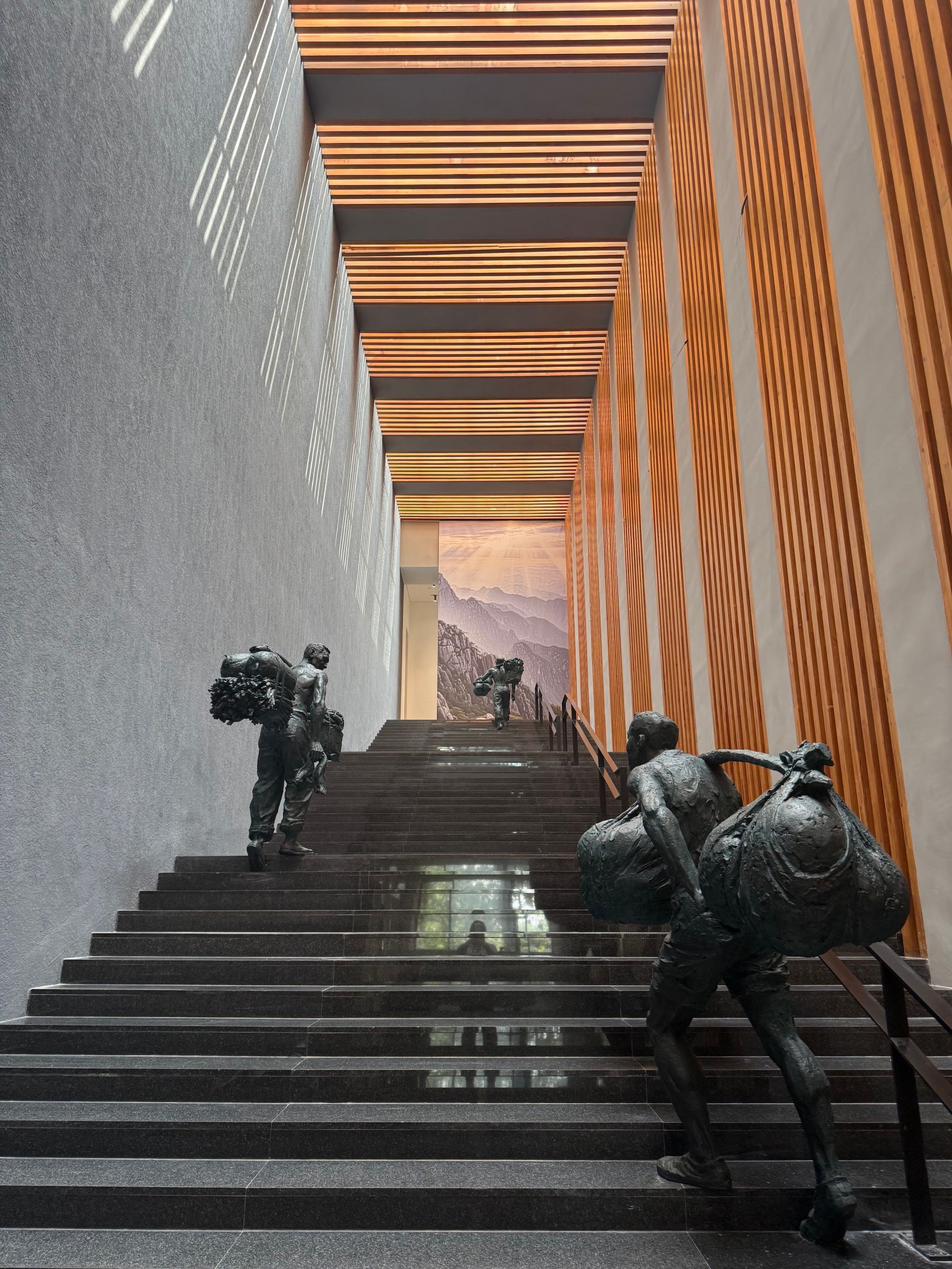 南区的展览则是中华传统文化的璀璨星河。“美的历程”展中,从远古的彩陶到秦汉的画像石,从魏晋的佛造像到盛唐的天王俑,从宋代的瓷器到明清的木雕,古代雕塑与陶瓷串联起历代审美嬗变,像是一条流光溢彩的艺术长河。站在北魏佛造像前,能感受到静穆空灵的神性之美;凝视丝绸之路的航海瓷,能触摸到盛世的雄浑热烈;端详宋代磨喝乐,能体会到雅致隽永的文人情怀;欣赏明清木雕,能惊叹于巧夺天工的匠心。每一件文物都在诉说着“各美其美,美美与共”的中华美学精神。