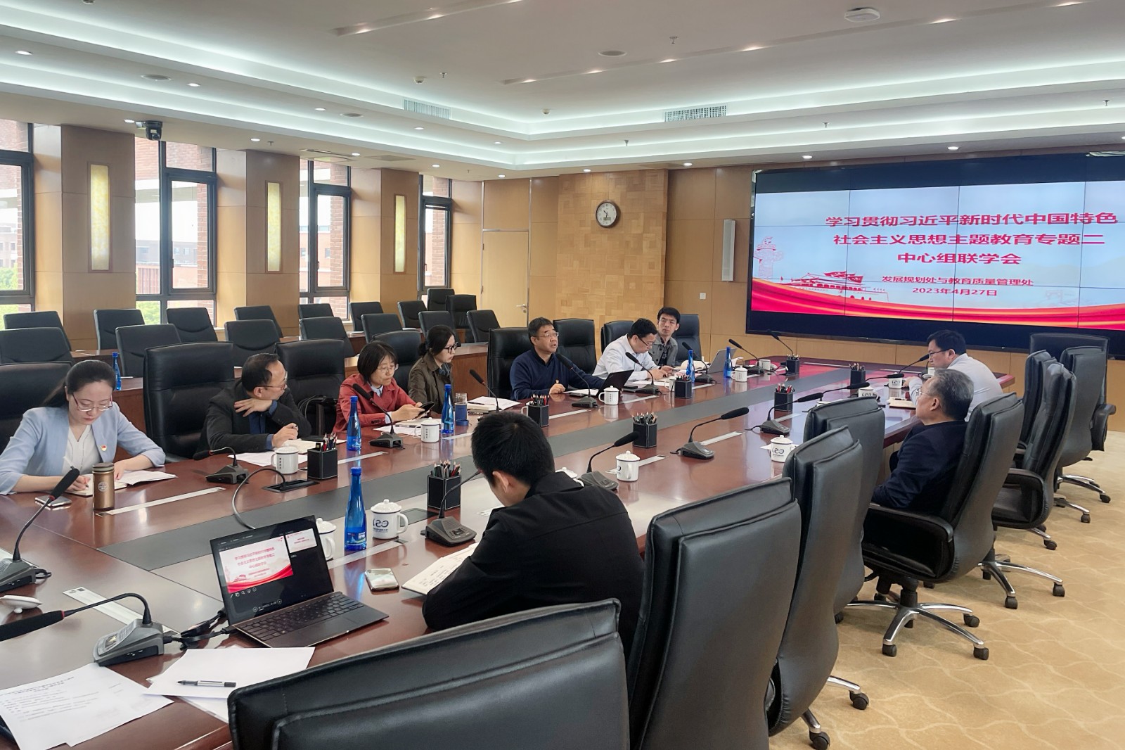 4月27日,发展规划处与教育质量管理处联合召开主题教育专题学习研讨会。会议由规划处党支部书记、处长杜青主持。校党委常委、副校长郑刚出席并讲话。他号召大家要结合学校事业发展实际,充分运用科学方法解决学校发展的难题,努力做到学用结合、学以致用,为高教事业发展贡献力量。与会人员集中学习了习近平总书记关于坚定理想信念、对党忠诚方面的重要论述,习近平总书记在2022年中共中央政治局民主生活会上的讲话精神及《中共中央关于党的百年奋斗重大成就和历史经验的决议》等内容。