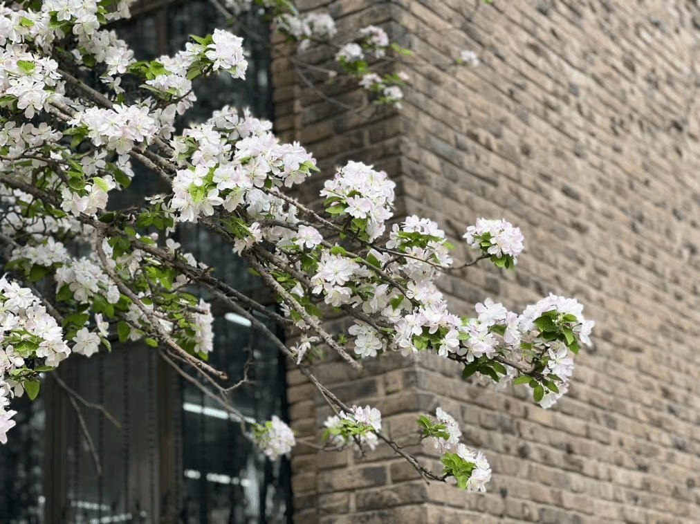 每年四月,当春风拂过卫津路与北洋园校区,海棠花便如同收到了神秘的指令,一夜之间,千树万树竞相绽放。起初,只是星星点点的粉白点缀在枝头,宛如天边的云霞轻轻飘落。没过几天,便成了一片花的海洋。卫津路校区铭德道两侧的海棠,像是两排粉白的花墙,微风拂过,花瓣如雪花般纷纷扬扬飘落,给道路铺上了一层柔软的花毯。水利馆附近那几株有着约70年历史的海棠树,更是这场盛宴的主角,它们见证了岁月的变迁,每一道纹理都诉说着天大的故事 ,在海棠季期间,以最蓬勃的姿态,向人们展示着生命的坚韧与美好。