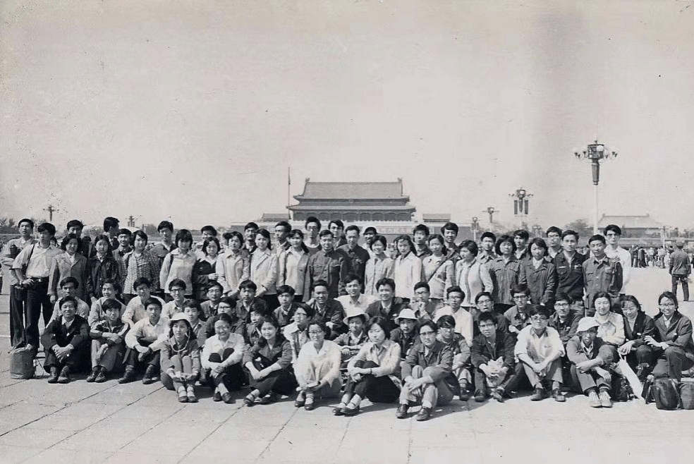 北洋艺术团首任团长兼指挥、精仪系82级生物仪器校友商澎收藏的照片。北洋艺术团到清华大学访问演出后,次日在天安门广场合影留念。后二排中为杨渝钦副校长