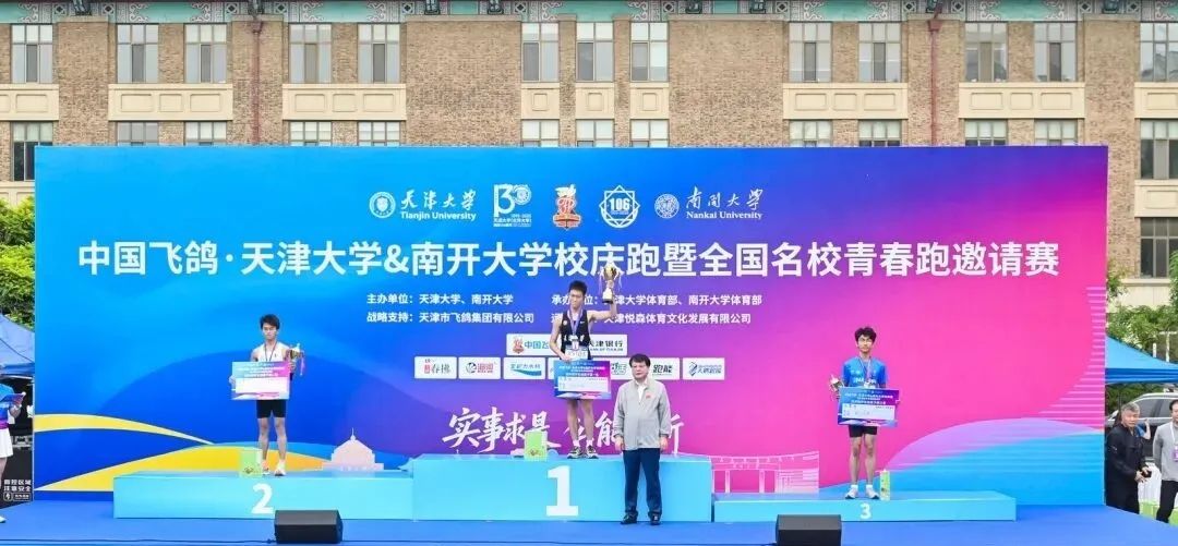 周天昊以45分17秒的净成绩获得校庆跑学生组男子组冠军,何邦国、刘梓强分别以46分08秒、46分24秒的净成绩获得校庆跑学生组亚军和季军。