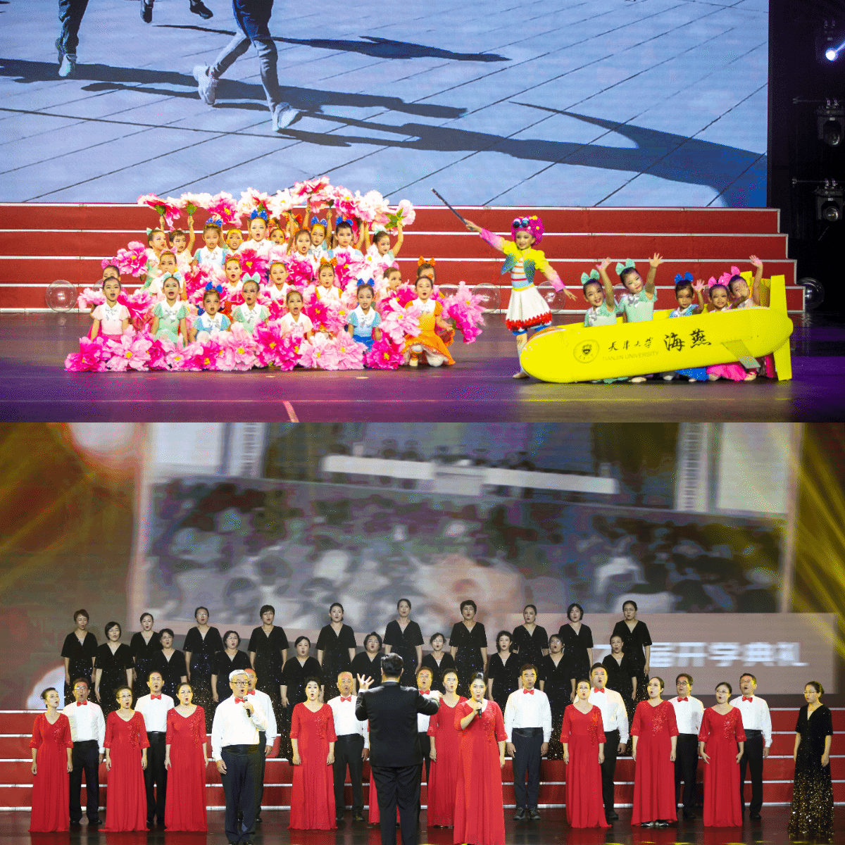 丰富多彩的文艺节目展现了学校文化建设的丰硕成果。民族打击乐《马灯舞》催人振奋;相声《咱的天大》以幽默诙谐的对话呈现新老天大人的“信息差”,折射出三十年来校园生活的变迁与不变的天大情;情景歌曲表演《拾光》则由研究生支教团原创,讲述天大人奔赴西部支教、播种梦想的感人故事,引导新生树立服务国家、奉献社会的志向;北京校友会舞蹈团以《舞韵北洋贺华章》为母校送上诚挚祝愿;天大幼儿园孩子们带来的《小小的我有天大的梦想》展现了 “天大梦想” 最鲜活的起点;天大附小北洋童声合唱团带来的《启程》,用天籁童声向世界传递美好期许。