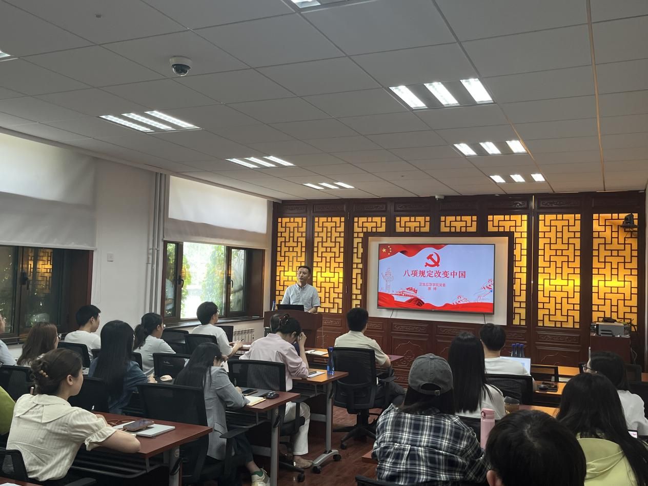 本站讯(张子阳 钟瑞)为持续推进“深入贯彻中央八项规定精神学习教育”入脑入心、见行见效,5月21日下午,卫生应急学院党委书记庞博为学院师生讲授《八项规定改变中国》专题党课,学院党委委员、全体师生党支部书记、委员、学生骨干参加此次学习。