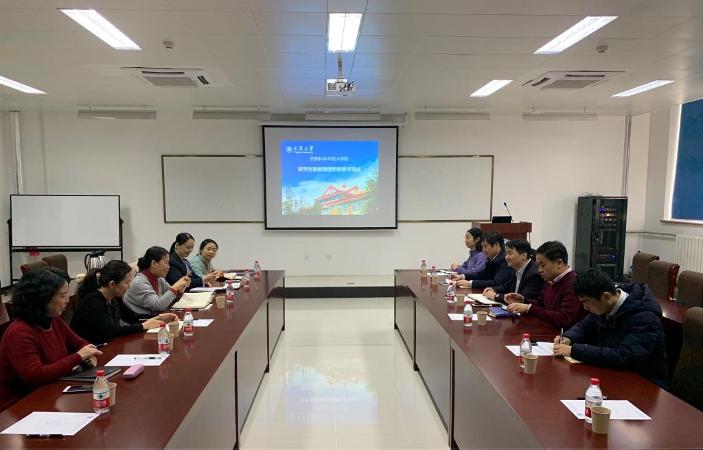 冯翠玲书记首先就国际化示范学院的人才培养定位和总体发展情况进行简要汇报,重点介绍了学院正在探索的研究生助教机制,这项机制旨在服务本科生全英文教学,同时提高研究生基本科研技能。张玲副院长随后就助教制度的类型、工作时间、选拔流程、岗前培训、工作职责、考核评价等方面进行具体介绍,并就本研贯通的设计方案进行汇报。