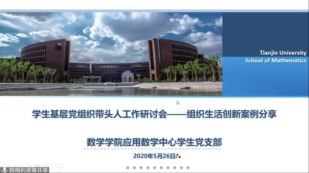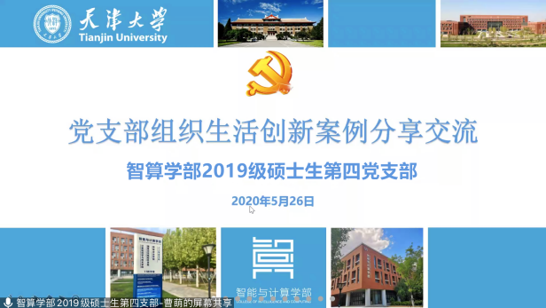 智算学部和数学学院在“天津大学2020年春季学生基层党组织带头人队伍培训”进行了学生党支部优秀组织生活创新案例申报和评选活动,共评选出4个创新案例。