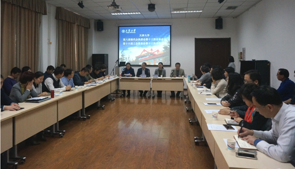 本站讯(通讯员 温锌勇 摄影 王训斋)2月27日,天津大学召开第十六届工会委员会第十三次全体会议和第八届教代会执委会第十三次全体会议,校党委副书记、纪委书记孙广平,校党委副书记、组织部长、统战部长赵美蓉出席会议,学校第十六届工会委员会委员、第八届教代会执委会委员参加会议。会议由校工会副主席陈宝禄主持。