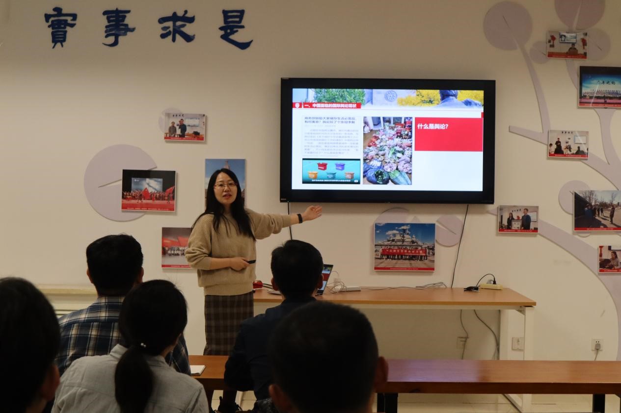 尹伟从舆论的定义、舆论对人们日常生活的影响以及国际舆论对国家稳定与发展的影响入手,深入浅出地介绍了中国目前面临的国际舆论现状及诱因,分析了西方舆论攻击的性质与特点,同时与在场的老师一起探讨了中国应对负面国际舆论的对策与建议。