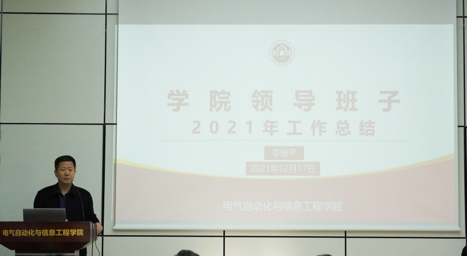 本站讯(通讯员 赵启慧)为不断改进领导班子监督形式,充分发挥民主监督的作用,2021年12月17日,电气自动化与信息工程学院领导班子述职述廉大会在26楼报告厅顺利举办,此次大会由李继平书记主持,学院党政领导班子成员、学院各系(中心)主任、副主任、支部书记和教师代表出席会议。
