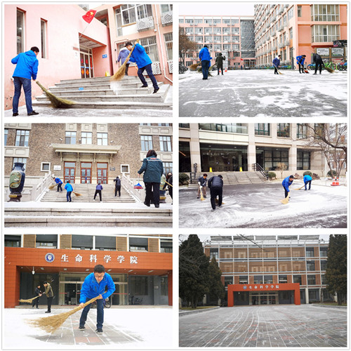 12日清晨,迎来首场降雪,纷纷扬扬。全体物业人员迅速行动,顶风冒雪,对学校各楼宇及学生公寓的台阶、门口、周边及主干道上的积雪进行清扫,保证道路畅通无阻;在楼宇和学生公寓的门口铺设防滑地垫、摆放防滑标牌,同时安排门值员和宿管员提醒来往师生注意出行安全;对25楼、26楼、会议楼的地库出入口处及时进行清扫,确保车辆出入地库的行驶安全。