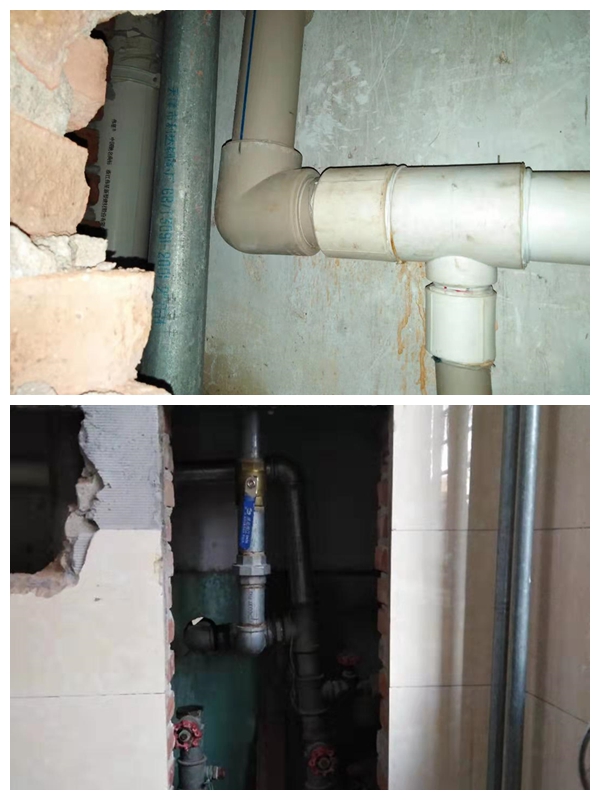 本站讯(通讯员 李晓琼)2019年11月8日下午3时左右,自管物业第17教学楼值班人员张师傅正在例行巡视检查过程中发现一层男卫生间里隐隐有管道“咝咝”漏水的声音,因为该层正处在装修施工期,现场相对比较杂乱,但张师傅警觉的听到有水流的声音后随即进去寻找查看,发现流水声来自墙里面,外面虽然有一个很小的探视口,但里面一片漆黑,根本无法看清流水的具体位置,他立刻找来手电筒,先把拿手电的胳膊伸进探视口,又勉强把头伸进去查找,隐约看到自来水管侧支接口漏水严重,张师傅顾不上头上和身上沾满的灰尘,找到漏点后随即上报维修。维修人员赶到后,发现施工空间狭窄无法操作,现场施工需要破拆墙面,管理人员立即联系学院,学院领导随即开会研究破墙方案,并安排楼内一至六层全部停水保证管道的抢修。当墙面破拆开以后发现墙内积水深达20多厘米且无处排放,如不处理水含在墙内存在很大隐患。经过大家的齐心努力,学院自来水管道漏水险情得到了解决。院领导特意向认真负责的物业员工致谢说“辛苦大家,你们太负责了”。