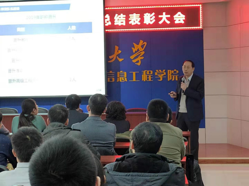 院长王成山向全体教师作学院2019年度工作总结报告。报告从师资队伍建设、学科建设、科研工作、本科生教学工作、研究生教育、国际交流、学生工作、学院管理等8个方面对学院工作进行总结,对于学院各方面工作取得的成果和建设的现状进行了系统的介绍。学院现有教职工293人,在大家的共同努力下,学院2019年的各项工作展现了蒸蒸日上的局面,在青年人才培养、国际交流合作、科研经费和国家自然基金数量、高水平论文发表、新工科建设、大类招生培养、教学验收与技能比赛、研究生培养、学院制度化建设等方面都收获了喜人的成果。王成山说:学院会为大家创造更多的条件,让大家有更大的施展才华的机会,希望大家好好把握机会开展好工作。