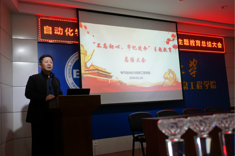 党委书记李继平对“不忘初心、牢记使命”主题教育进行总结。李继平传达了天津大学主题教育总结大会的精神,对自动化学院主题教育开展情况向大家进行汇报。李继平提出:各个党支部要尽快组织开展学习习近平总书记在“不忘初心、牢记使命”主题教育总结大会上的讲话精神,围绕学院中心工作,聚焦学习贯彻习近平新时代中国特色社会主义思想这一主线,紧扣立德树人的根本任务,切实推进整改落实,将学习教育长久的开展下去。