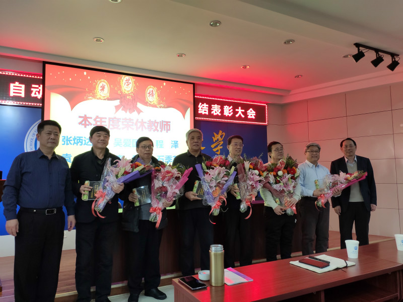 大会为2019年度荣休的6位教师颁发了纪念品并敬献鲜花,感谢他们为学院的发展建设作出的无私奉献,希望在职教师要继承和发扬老教师的光荣传统,弘扬优秀的师德风尚,全身心的投入到学生的培养上去,为社会输送有用人才。