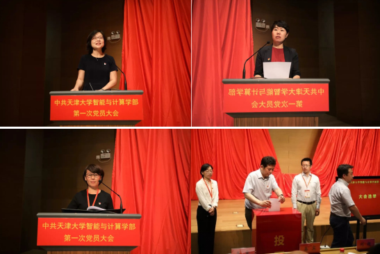 大会审议通过了工作报告。随后,学部智能语音团队研发的全国首个高校人工智能新闻主播海小棠向大家宣读《中共天津大学智能与计算学部第一届委员会委员候选人预备人选酝酿情况》,全体代表审议了《中共天津大学智能与计算学部第一次党员大会选举办法(草案)》,通过了总监票人、监票人名单,并通过无记名投票方式差额选举产生了中共天津大学智能与计算学部第一届委员会委员。他们是(以姓氏笔画为序):史慧、冯伟、花建锋、李晓红、张维、赵娜、胡清华、喻梅、魏建国。
