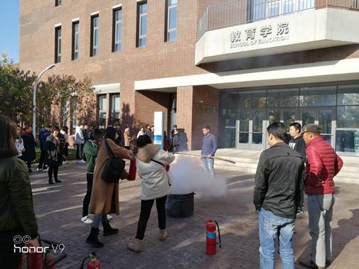 本站讯(通讯员 郁聪)为提升学生的消防安全意识,2018年11月16日中午,教育学院在33教学楼前进行消防疏散演习活动。教育学院副院长朱红春、夏军、学院部分老师及全体本科生参加此次消防演练活动。