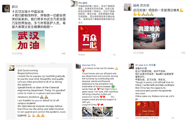 当前,学生们严格遵守街道社区和学校的要求,始终以积极乐观的心态,每日测量上报体温,做好防护措施,减少出行。同时,学生们通过多种途径表达了与学校和中国人民一道战胜疫情的信心和决心,坚信中国一定可以打赢这场疫情阻击战。