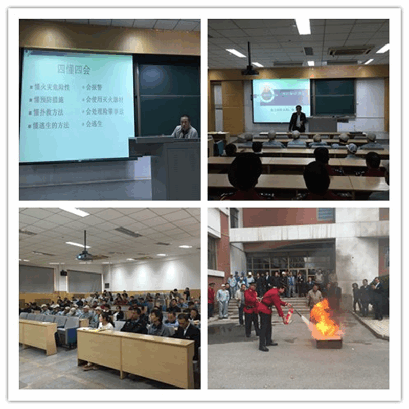 陈庆丰科长从消防相关的法律法规及学校规定、公民的消防义务、四懂四会等理论知识讲起,结合几十年丰富的岗位经验和身边的实际案例、图片,向大家详细介绍了紧急情况下的应对措施、室内消火栓及使用、各种消防器材的特点和功能、楼宇火灾隐患等实用的消防安全知识。特别结合物业工作,介绍了《天津物业管理条例全文2015-2016天津最新物业管理条例实施细则》中有关消防安全方面的具体条款及《天津大学消防设施、灭火器材管理规定》,做到有法可依、有章可循。对于物业人员在日常工作中的巡查重点及火灾发生后的紧急处置措施、报警电话都予以说明。