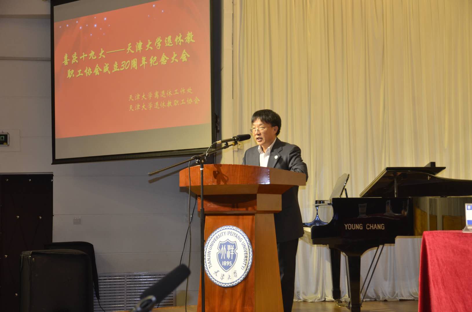 本站讯 (通讯员 王小轩)11月3日,天津大学退休教职工协会成立30周年纪念大会暨喜庆十九大音乐会在天津大学卫津路校区大学生活动中心召开。天津大学副校长张凤宝,老领导苏全忠,离退休工作处、统战部、人事处、退休教职工协会、为老服务中心等相关单位负责人出席了大会。数百名退休教职工参加了会议。