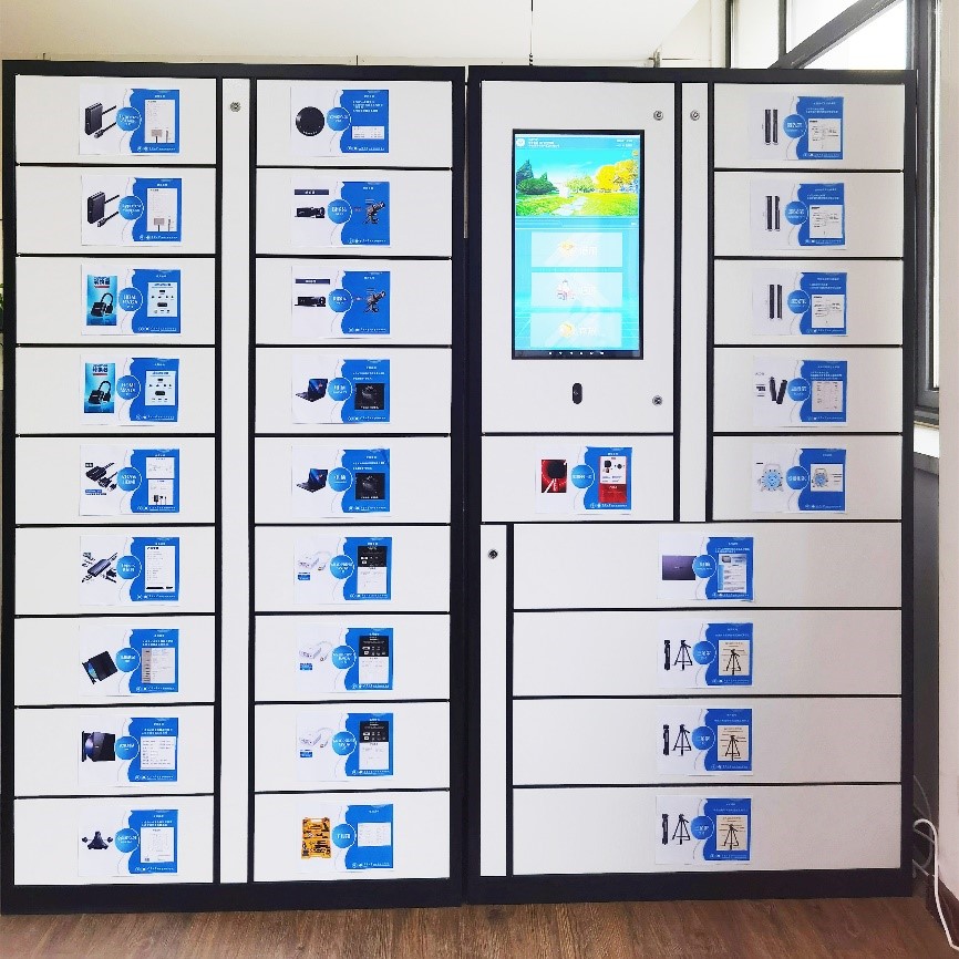 目前在地科院试点的智能借物柜,提供可借用的物品包括:笔记本电脑、相机、摄像头、麦克风、录音笔、转接头、激光笔、移动光驱、线轴电源线、工具箱等20余种。