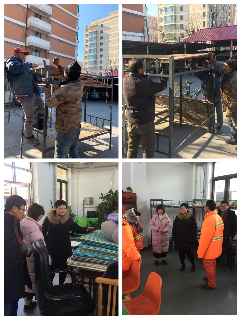 有的环卫工人早晨4点多就起床奔赴岗位,经过一上午的劳动已经非常疲惫,后勤保障部领导要求要按照“一天都不耽误”的节奏,尽快解决工人难题,让环卫工人在繁重劳动之余能够有个温暖舒适的休息环境,感受到学校师生对他们的关心爱护,鼓舞他们的干劲。后勤保障部积极行动,维修管理科对上下床的损坏处进行电焊加固,物业监管科鼓励毕业离校同学为环卫工人捐赠床垫,校园环境管理科将工人休息区进行了全面清扫和规划,经过共同努力,全面改善了工人休息环境。
