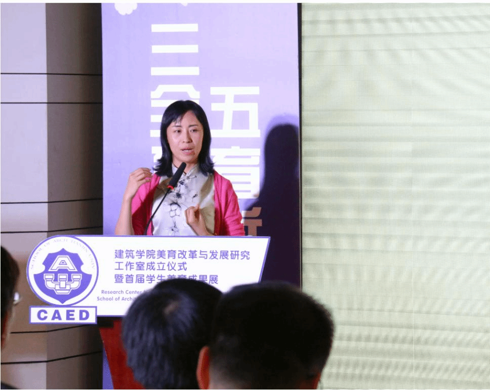 吕静在发言中讲到,建筑学院是最懂美的学院,工作室的成立对学校的美育改革工作具有重要意义。希望学院能抓住我校新工科建设的重大机遇期,统筹好校内外资源,不断探索工科与美育的交叉融合。