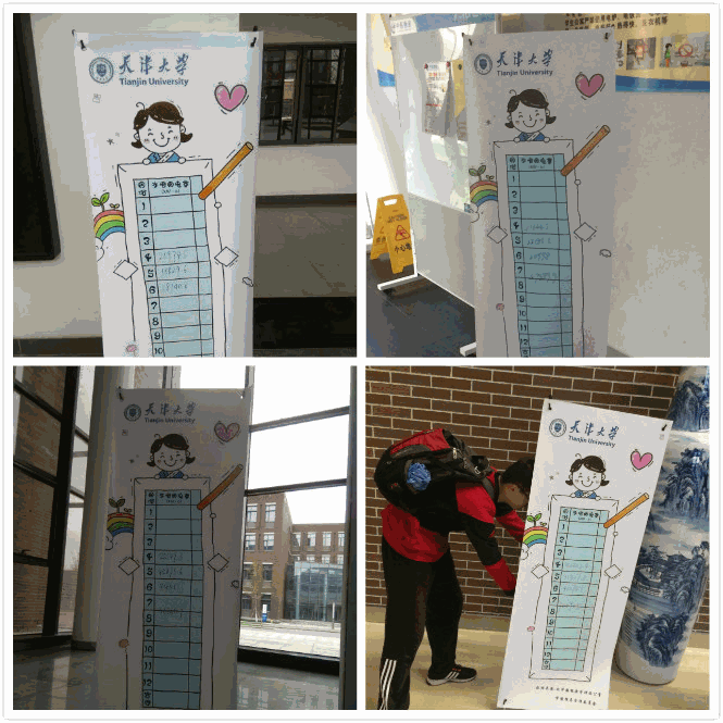 新校区启用至今,能源管理办公室每月定期统计北洋园校区所有楼宇的能源消耗量,通过进行对比分析,形成《天津大学北洋园校区能源分析报告》,为学校能源定额管理提供了参考依据。活动当天,节能委员会的成员们在北洋园26栋宿舍楼、25栋教学楼、3栋场馆及6栋行政办公建筑共计60栋楼宇的醒目位置放置了写有本楼每月用电量的展架。“一粥一饭当思来之不易,半丝半缕恒念物力维艰”。能源管理办公室和节能委员会的成员们采取放置展架这种最直观的方式让北洋师生了解各楼宇每月的用电量,希望以此为大家灌输节能理念,培养节能意识,逐步将节能变成每个人的自觉行为和责任。节能之路、永无止境,成员们将每月在展板上公示本楼宇上月用电情况,将活动一直延续下去。