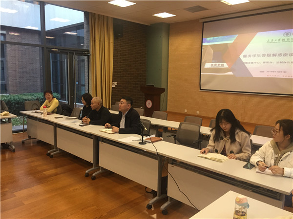 本站讯(通讯员 吴琼)11月11日下午,发展中心联合党支部走进教育学院,与教育学院2019级各专业研究生进行座谈,开展志愿服务,为学生答疑解惑。
