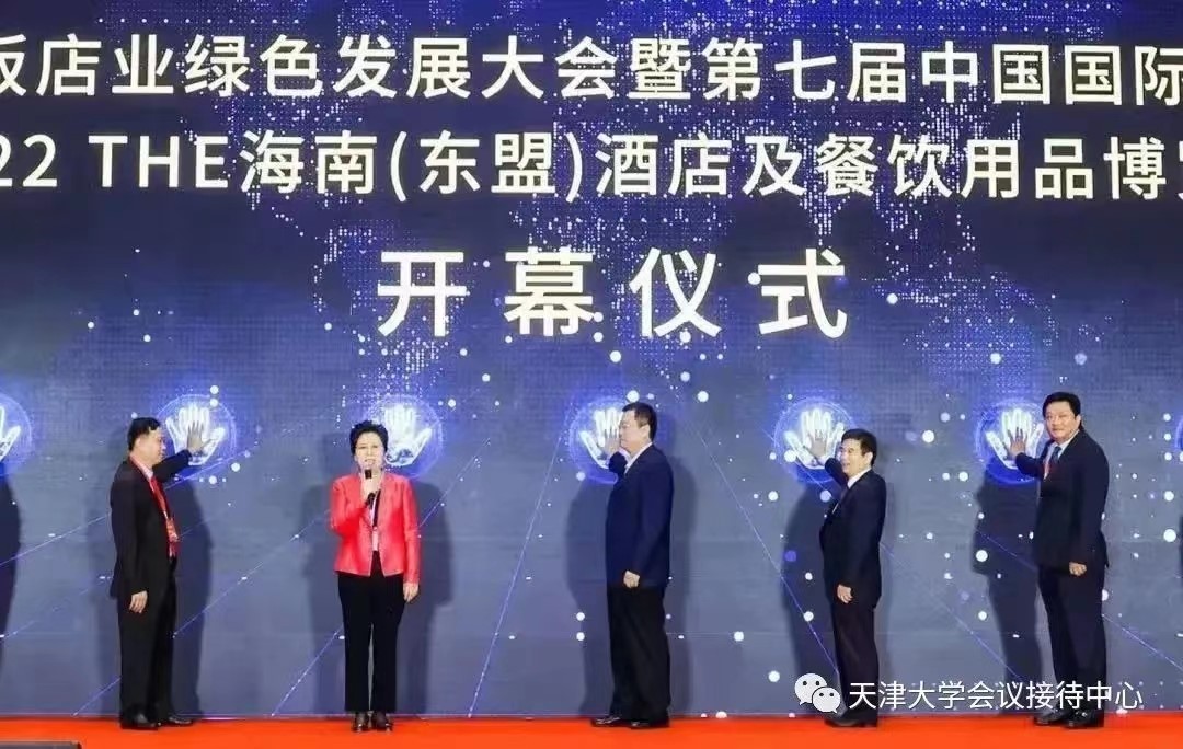 本站讯(天津大学会议接待中心供稿)2022年11月11日,万众期待的2022全国饭店业绿色发展大会暨第七届中国国际饭店业大会在海口召开。大会由商务部外贸发展事务局、国际饭店与餐馆协会、全国绿色饭店工作委员会、海南省商务厅和海口市人民政府联合支持,中国饭店协会、海南国际经济发展局与海南省归国华侨联合会共同主办,以“新格局、新消费、新动能”为主题。来自全国各地政府机构、行业协会、各酒店集团和品质饭店、绿色饭店代表性企业,行业龙头供应商近千位代表汇聚海口出席大会,会议通过线上线下的方式同步进行。中国饭店协会为各地受疫情影响不能参会的会员单位开通视频号直播,首次引入元宇宙实现线上展览洽谈。