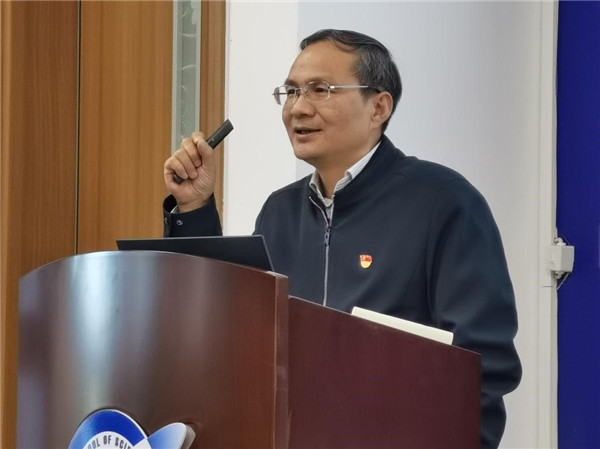 本站讯(通讯员 肖婷)根据理学院开展“不忘初心、牢记使命”主题教育工作安排,10月31日下午,理学院党委书记刘昌龙以《不忘初心、牢记使命,不断加强理学院党支部建设》为题,为学院全体在职教工及学生党支部书记、教师党员代表30余人主讲了一场深刻的主题教育专题党课,围绕主题教育的意义、基层党组织建设的新要求、当前学院党建工作中存在的主要问题和加强学院党支部建设的工作举措等方面进行讲述。