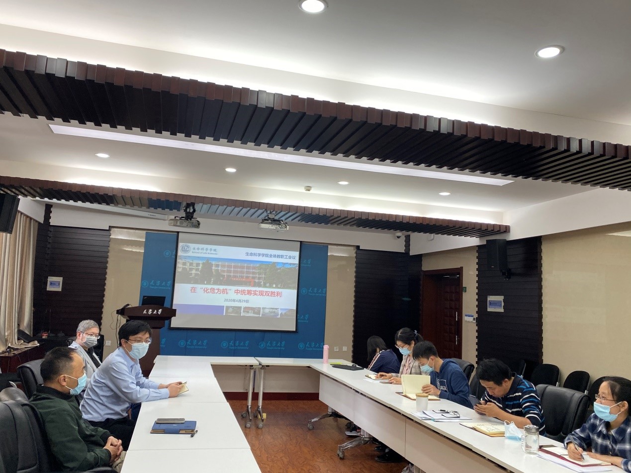 本站讯(生命学院供稿)4月29日下午,生命科学学院以线上和线下相结合的方式,召开全院教师大会,传达学习学校毕业年级学生返校复学动员部署会议精神,部署学院学生返校复学工作。院长叶升,副院长黄金海、韩远彬,学院全体教师参加会议,会议由党委副书记李一昂主持。