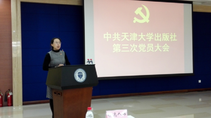 大会结束后,中共天津大学出版社第三届总支部委员会在出版社四楼会议室召开了第一次全体会议。会议选举马小宝同志为中共天津大学出版社总支部书记。新一届委员会表示,将在学校党委领导下奋发进取、勇于担当,用党建工作的积极成效促进出版社事业的发展,为学校建设世界一流大学的奋斗目标、为中华民族伟大复兴的宏伟事业,做出我们应有的贡献。