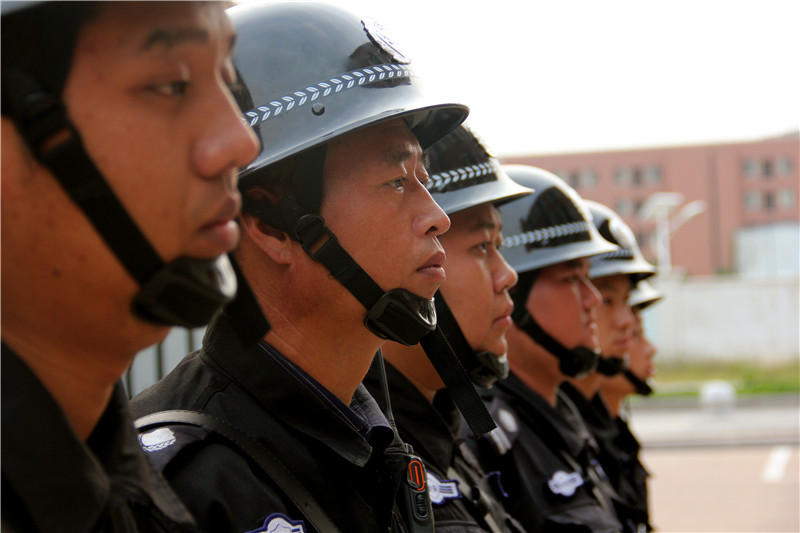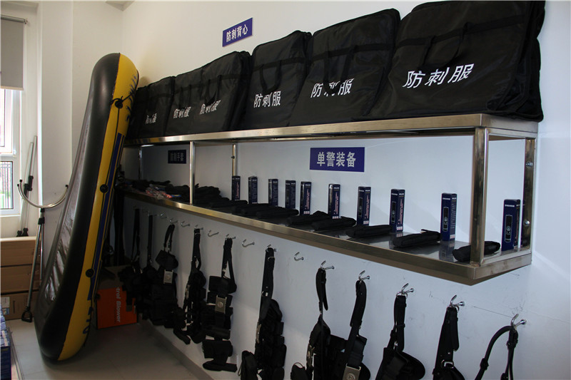 记者走访保卫处时发现,每位安保人员在岗期间都配有一整套专业安防设施,包括警棍、盾牌、防暴服、警用喷雾、防暴钢叉,高强度防暴手套等等,警用设备室内还备有橡皮艇救生圈等水上救援设备。