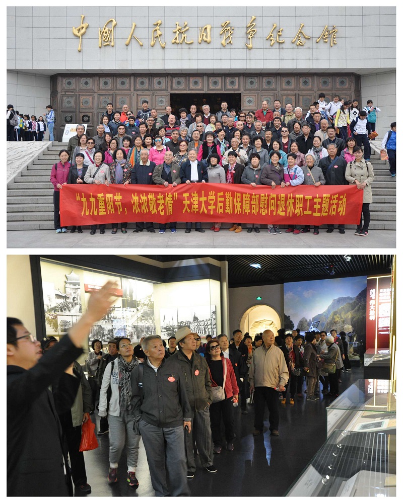 本站讯(通讯员 张莹)在天津大学敬老月之际,正值九九重阳节之时,10月12日,后勤保障部党委开展“九九重阳节 浓浓敬老情”敬老爱老活动,暨后勤保障部慰问退休职工赴卢沟桥参观学习主题活动,90余名退休职工以观光游的形式走进中国人民抗日战争纪念馆,参观抗日战场、“七七事变”发生地——卢沟桥和世界花卉大观园。校长助理、后勤保障部部长刘宁、后勤保障部党委书记尚宇光、副部长谢继勇、副部长李梓、部长助理任建国及党政办公室相关工作人员,全程陪同老同志参加活动。