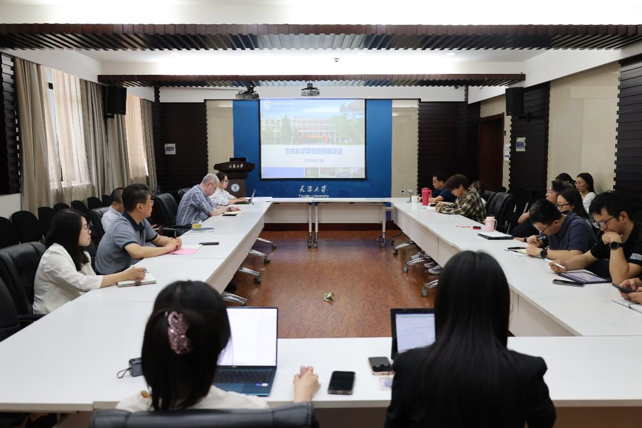 本站讯(生命科学学院供稿)为扎实开展深入贯彻中央八项规定精神学习教育,切实解决师生关切问题,5月16日,天津大学医学部生命科学学院召开教师座谈会,党委书记牛志广、院长叶升、党委副书记尚洁、副院长王涛、乔安娜、卜繁旭出席座谈会,学院领导班子与全院教师深入交流探讨,共话学院发展。会议由副院长卜繁旭主持。