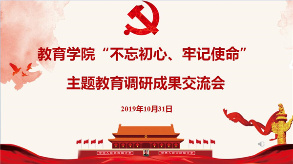 本站讯(通讯员 王志萌)2019年10月31日,教育学院领导班子在学院321会议室召开“不忘初心、牢记使命”主题教育调研成果交流会,讨论调研情况,检视调研中发现的问题,布置下一步主题教育工作,落实整改要求。天津大学第二指导组成员马宏彪出席会议,学院党委中心组成员、基层党支部书记、系室主任参加会议。会议由党委书记、教育学院“不忘初心、牢记使命”主题教育领导小组组长宋俊启主持。