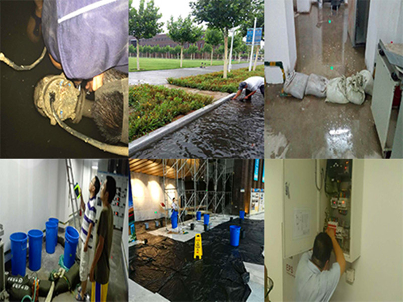 物业办组织三区物业公司在第一时间启动了暴雨应急方案,提前规划放置了防汛物资,组成了多个的排查小组,负责排查险情。降雨过程中,清理排水管道,疏通排水系统。对图书馆、地下室及多种重要地下设备进行维护,及时启动了防水措施,有效阻止了雨水灌入。委派专人对楼宇渗雨部位和数量进行详细统计。对新校区河道水位进行观察,随时调节水量,避免河水倒灌。
